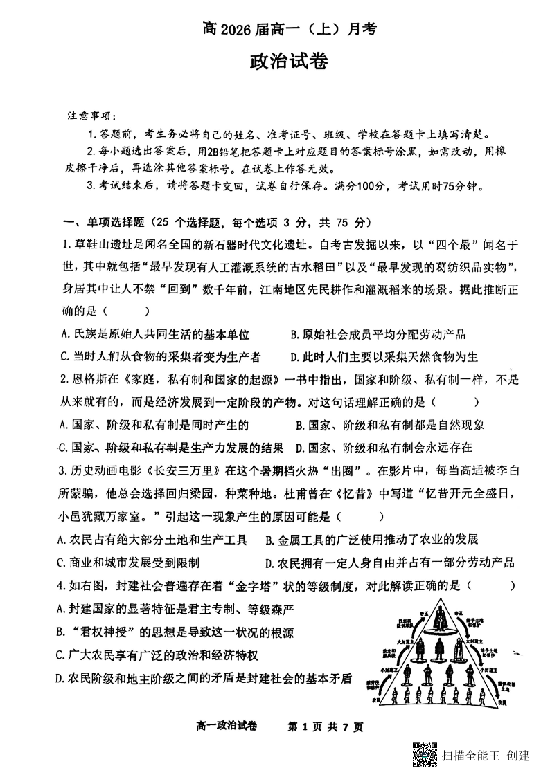 重庆市巴蜀中学校2023-2024学年高一上学期10月月考政治