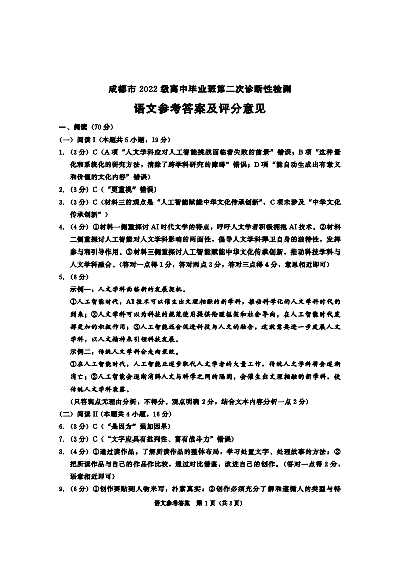 四川省成都市2024-2025学年下学期3月高三二诊统考语文答案