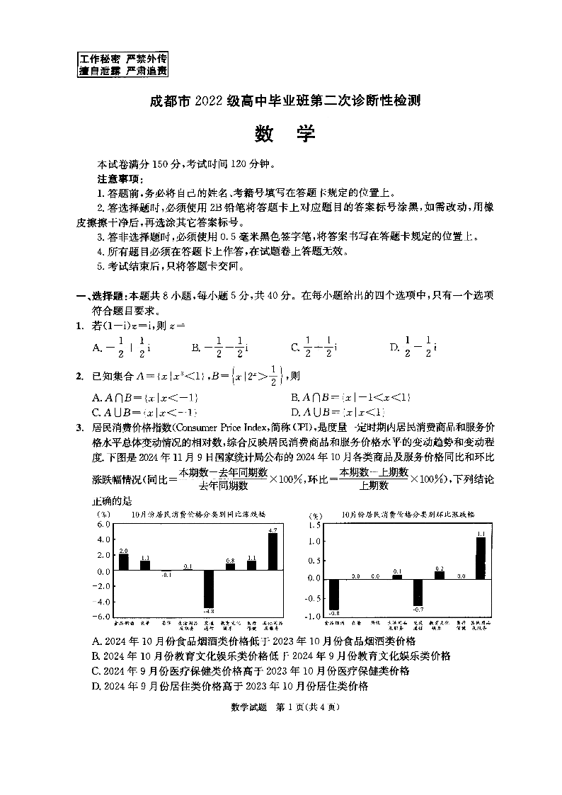 四川省成都市2024-2025学年下学期3月高三二诊统考数学