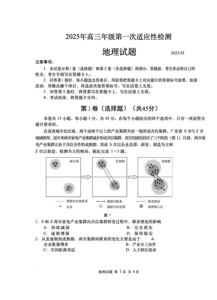 山东省青岛市2024-2025学年下学期3月高三一模统考地理+答案