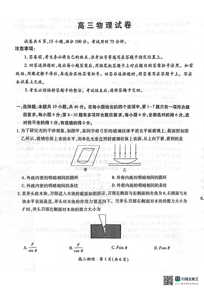 江西省上进联考2024-2025学年下学期3月高三二轮统一调研测试物理