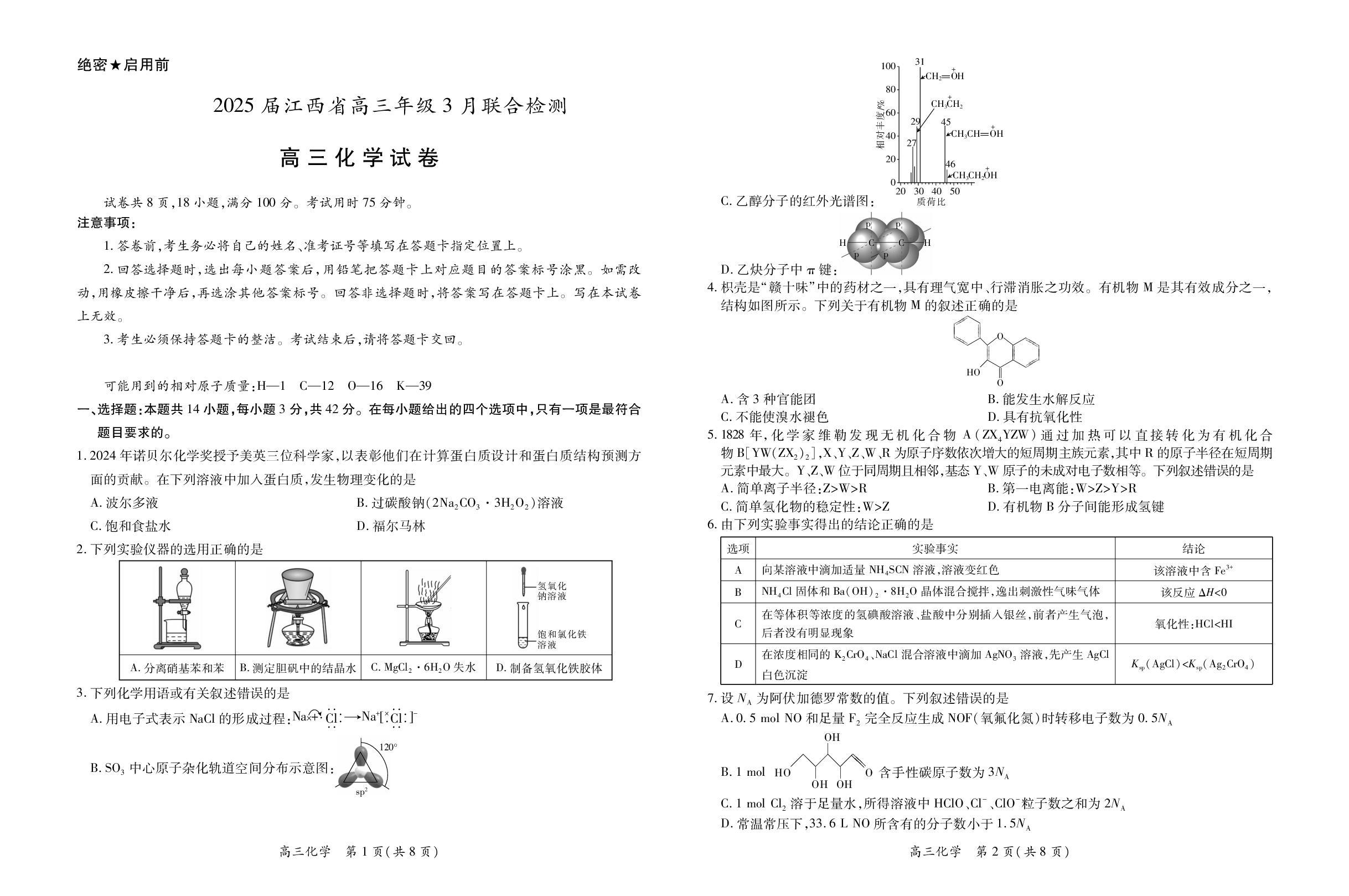 江西省上进联考2024-2025学年下学期3月高三二轮统一调研测试化学