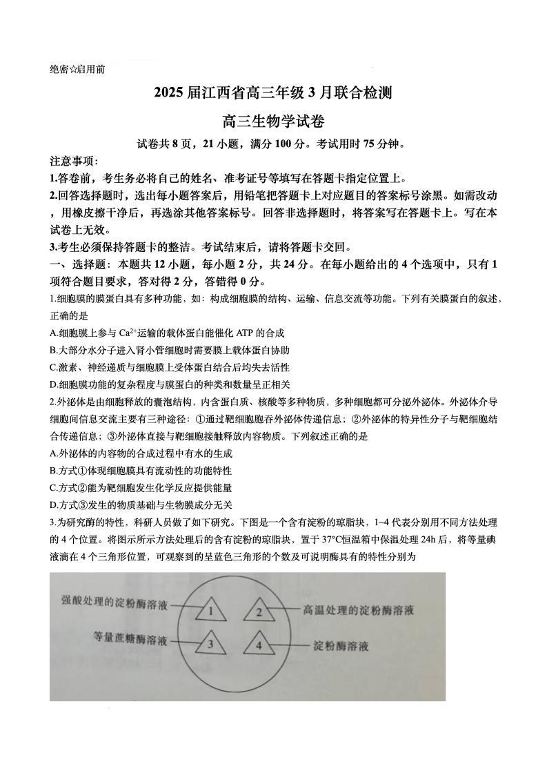 江西省上进联考2024-2025学年下学期3月高三二轮统一调研测试生物+答案