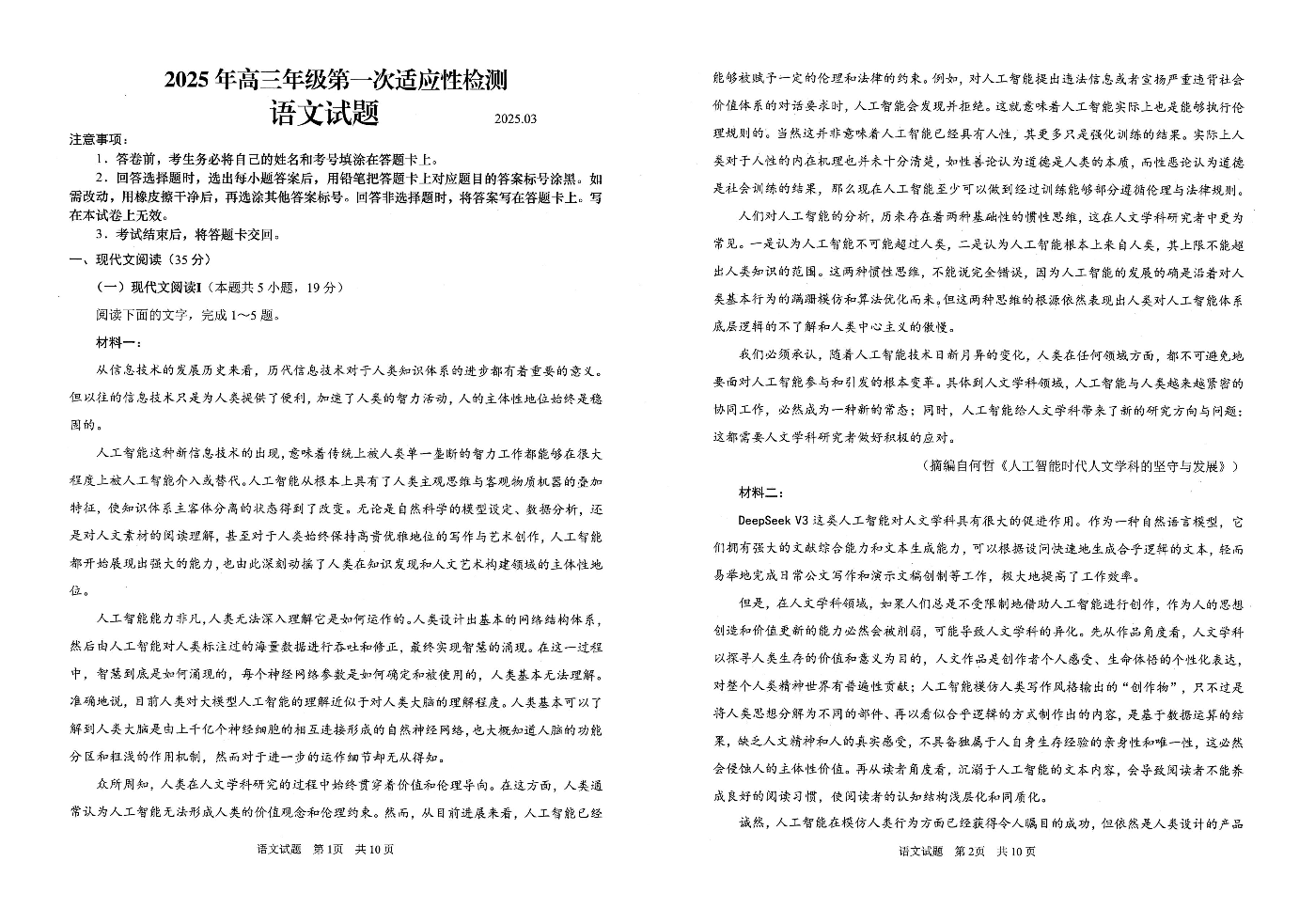 山东省青岛市2024-2025学年下学期3月高三一模统考语文