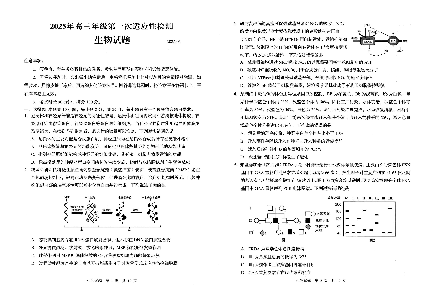 山东省青岛市2024-2025学年下学期3月高三一模统考生物
