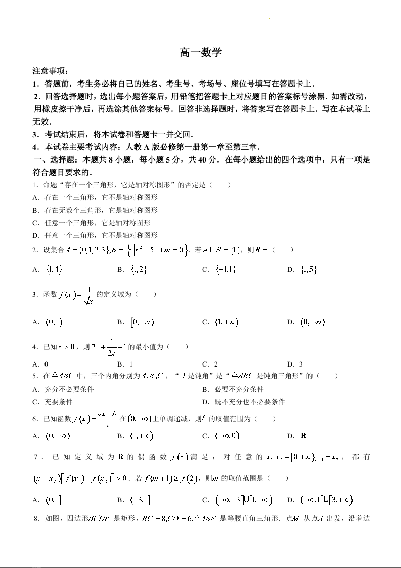 广东省湛江市2023-2024学年高一上学期期中考试数学