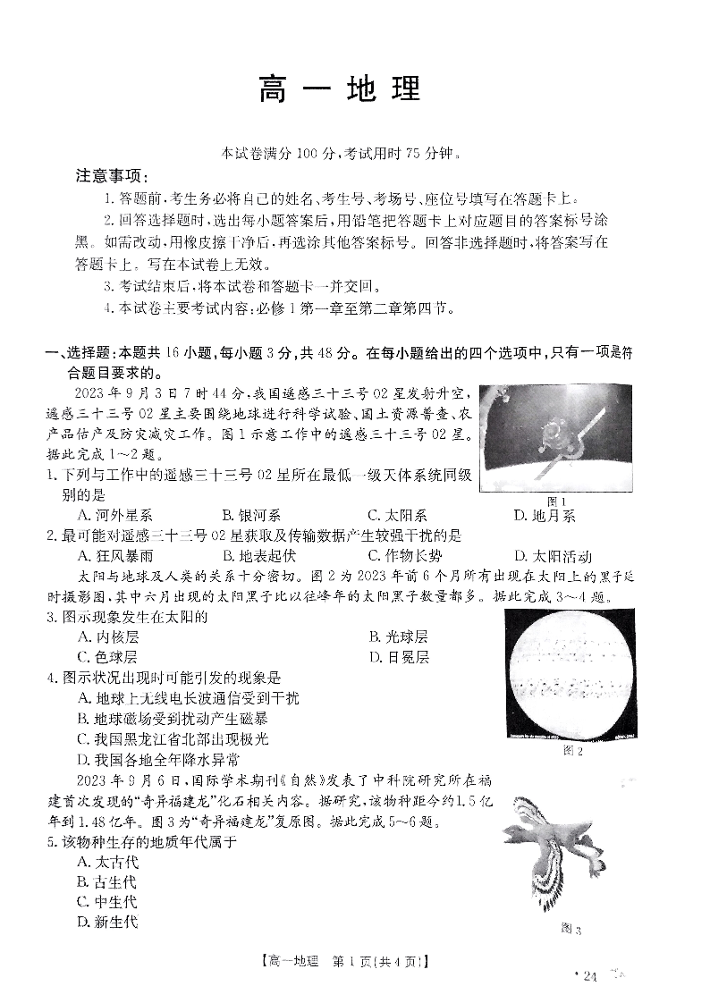 广东省湛江市2023-2024学年高一上学期期中考试地理