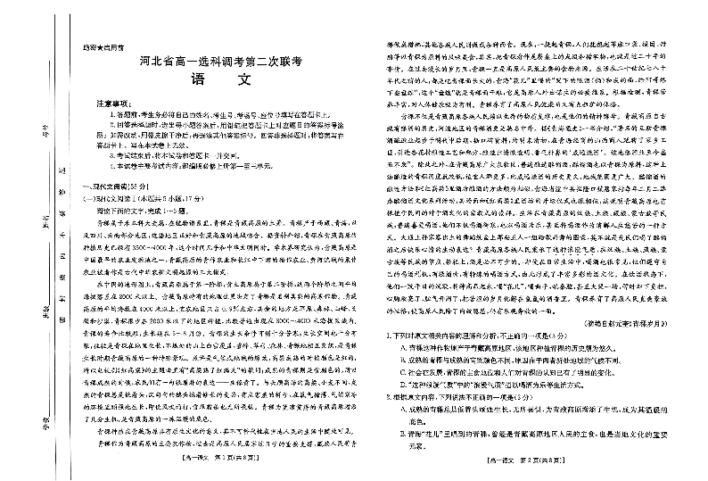 河北省保定市部分重点高中2023-2024学年高一上学期11月期中考试语文