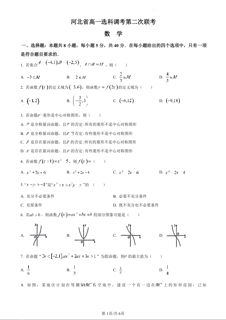 河北省保定市部分重点高中2023-2024学年高一上学期11月期中考试数学+答案