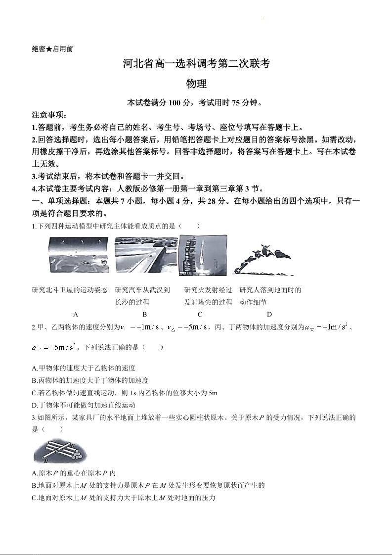 河北省保定市部分重点高中2023-2024学年高一上学期11月期中考试物理+答案
