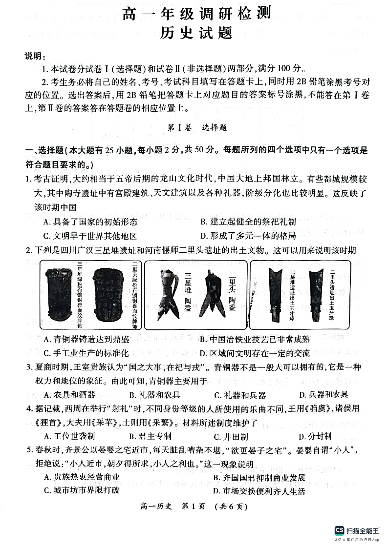 河南省开封市2023-2024学年高一上学期11月期中考试历史