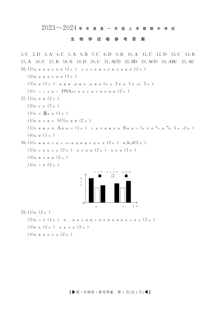 吉林省十一校联考2023-2024学年高一上学期期中考试生物答案