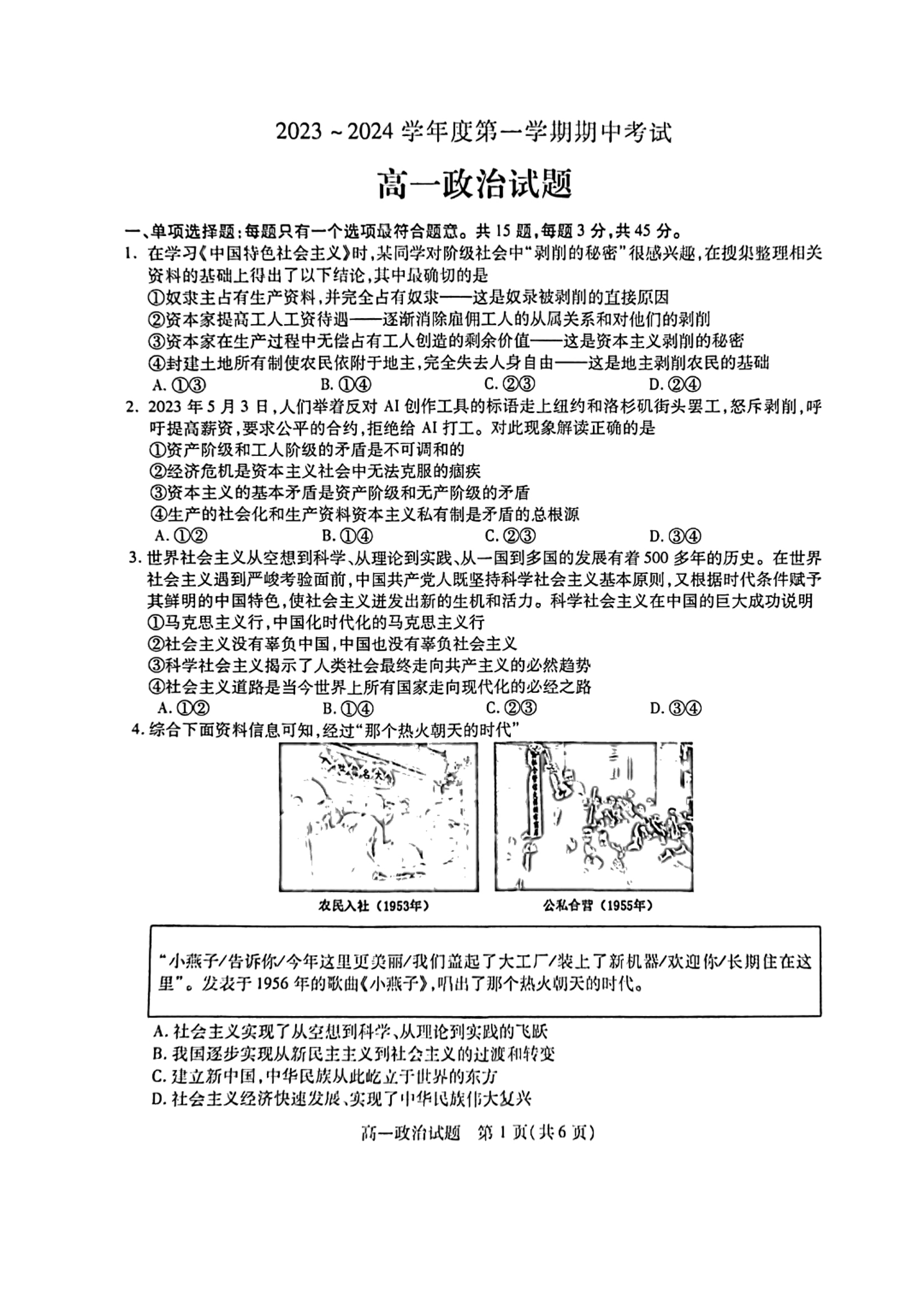 江苏省徐州市2023-2024学年高一上学期11月期中考试政治