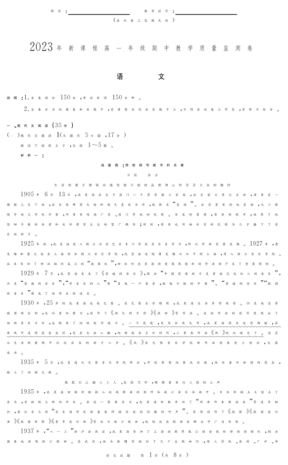 江西省抚州市2023-2024学年高一上学期期中考试语文