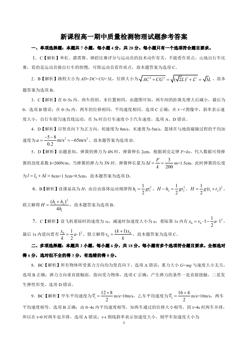 江西省抚州市2023-2024学年高一上学期期中考试物理答案