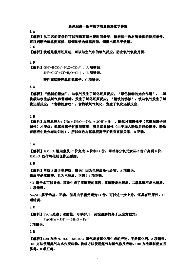 江西省抚州市2023-2024学年高一上学期期中考试化学答案