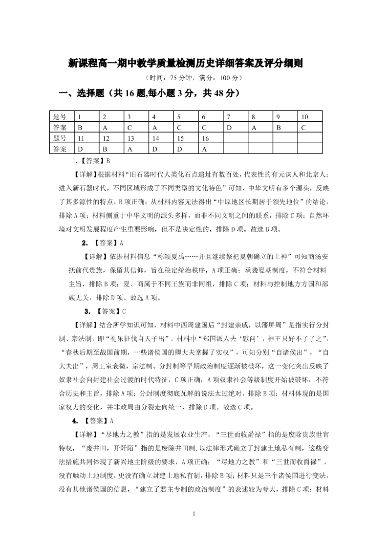 江西省抚州市2023-2024学年高一上学期期中考试历史答案