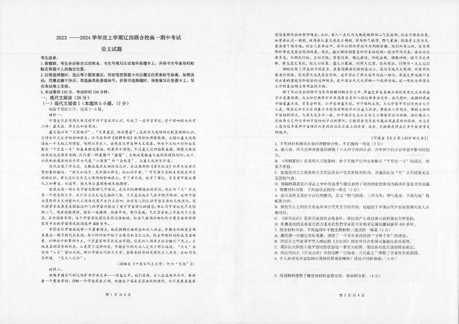 辽宁省辽西联合校2023-2024学年高一上学期期中考试语文