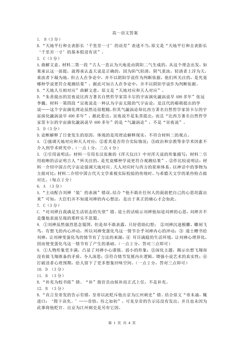 辽宁省辽西联合校2023-2024学年高一上学期期中考试语文答案