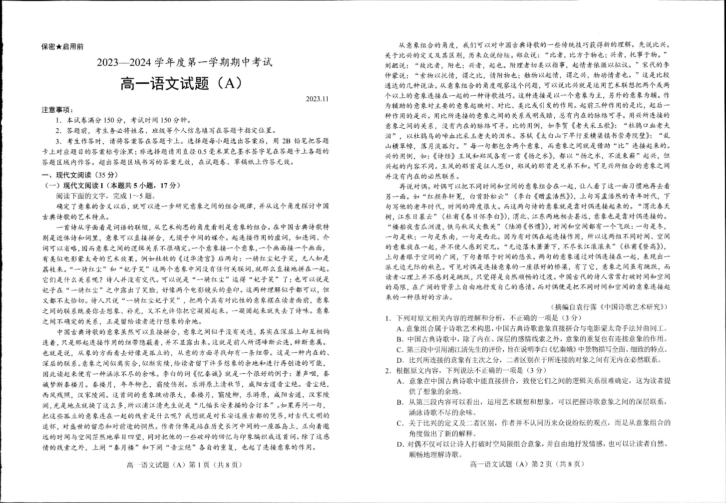 山东省菏泽市2023-2024学年高一上学期11月期中考试语文