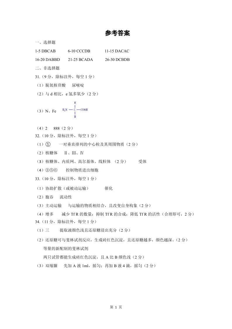 山东省名校考试联盟2023-2024学年高一上学期期中考试生物答案