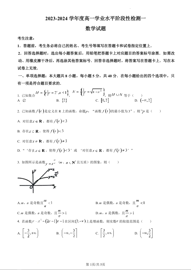 山东省青岛市莱西市2023-2024学年高一上学期11月期中考试数学(原卷版)
