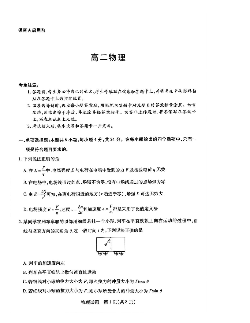 湖南省示范性高中2024-2025学年下学期2月高二联考物理