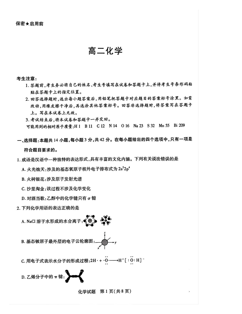 湖南省示范性高中2024-2025学年下学期2月高二联考化学