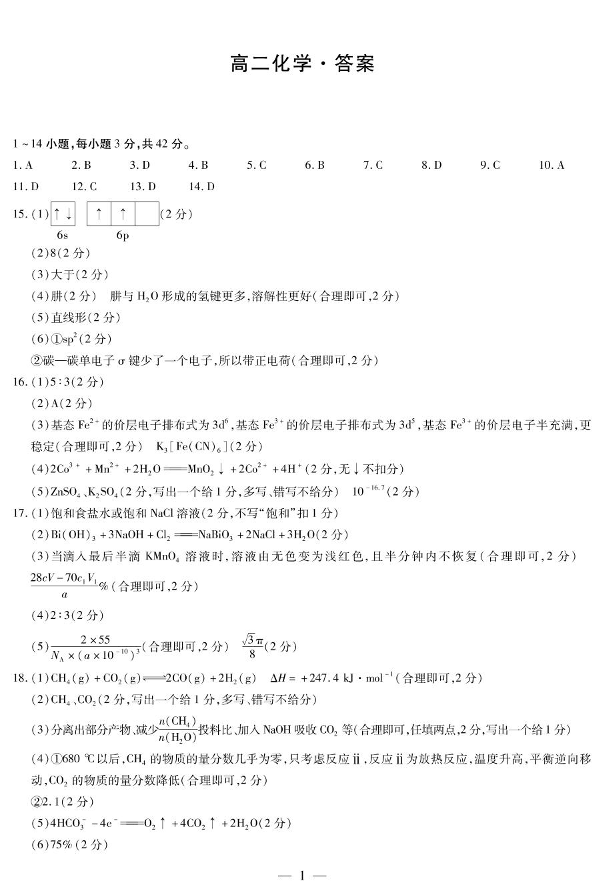 湖南省示范性高中2024-2025学年下学期2月高二联考化学答案