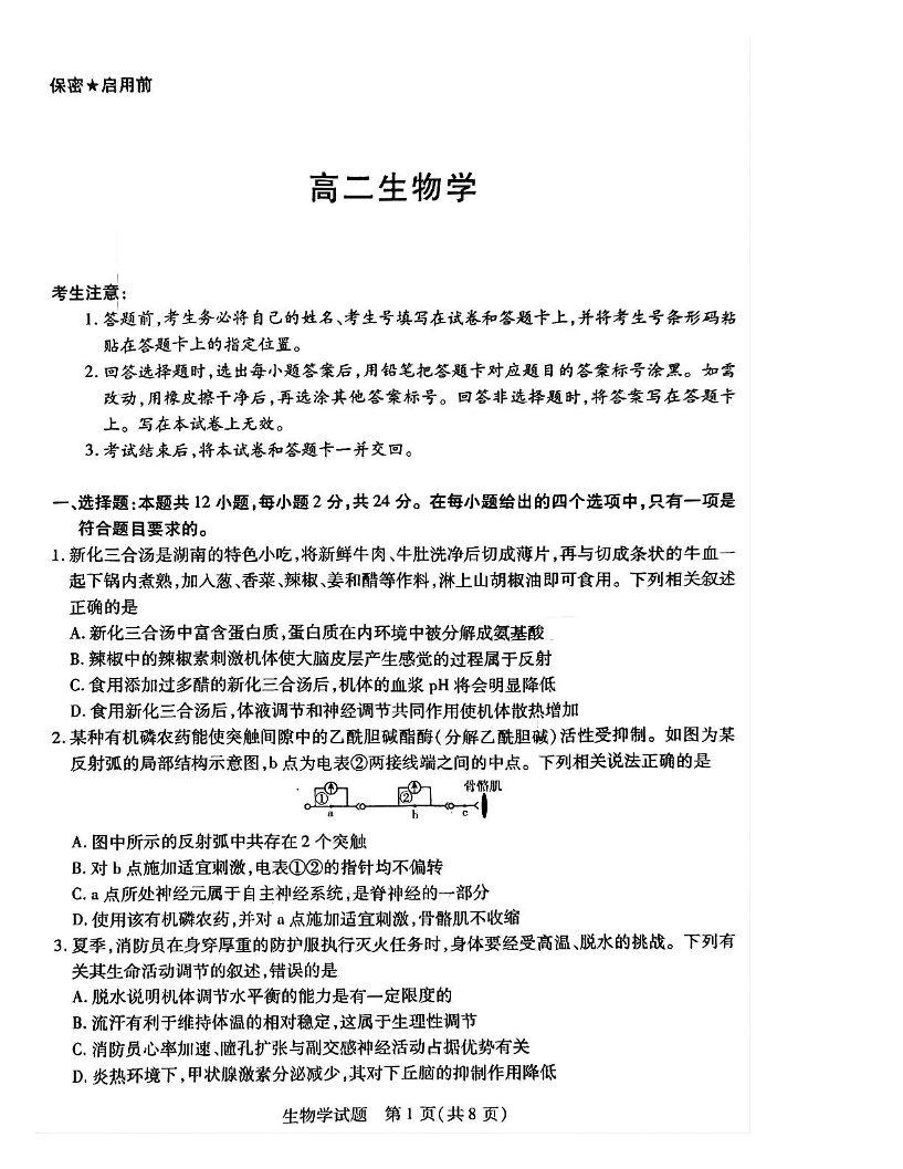 湖南省示范性高中2024-2025学年下学期2月高二联考生物+答案