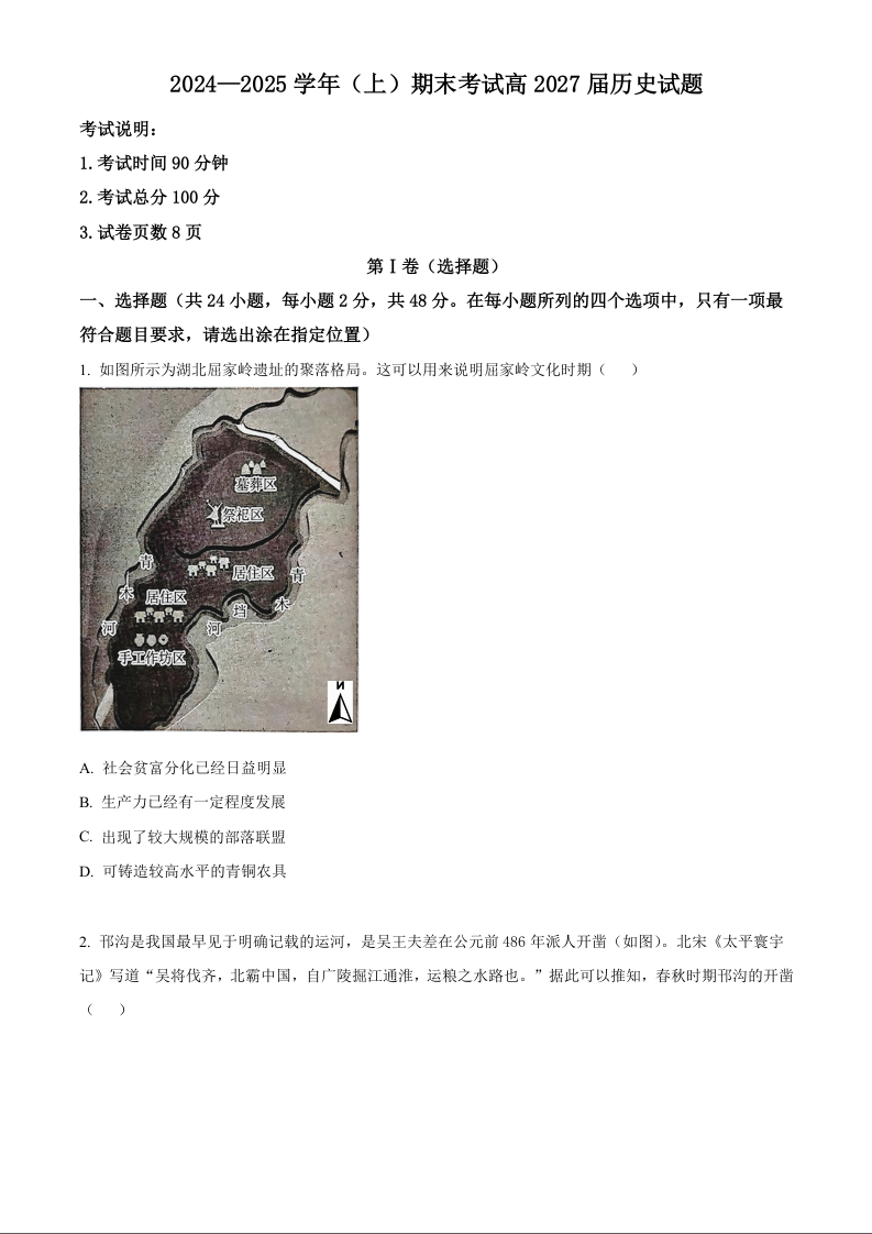 重庆市主城区七校2024-2025学年上学期1月高一期末考试历史(原卷版)