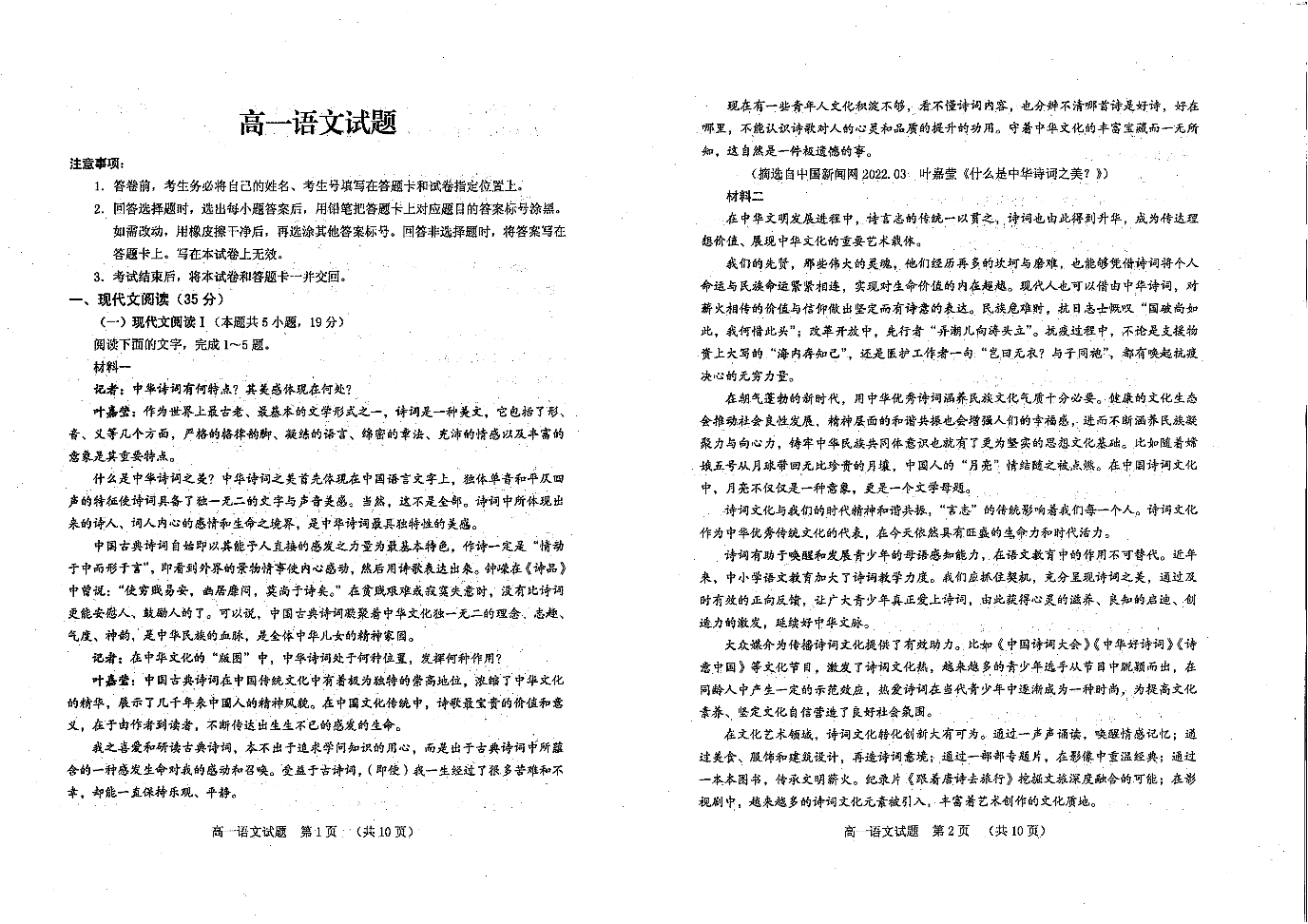 山东省泰安市肥城市2023-2024学年高一上学期期中考试语文
