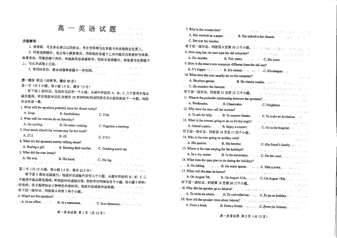 山东省泰安市肥城市2023-2024学年高一上学期期中考试英语
