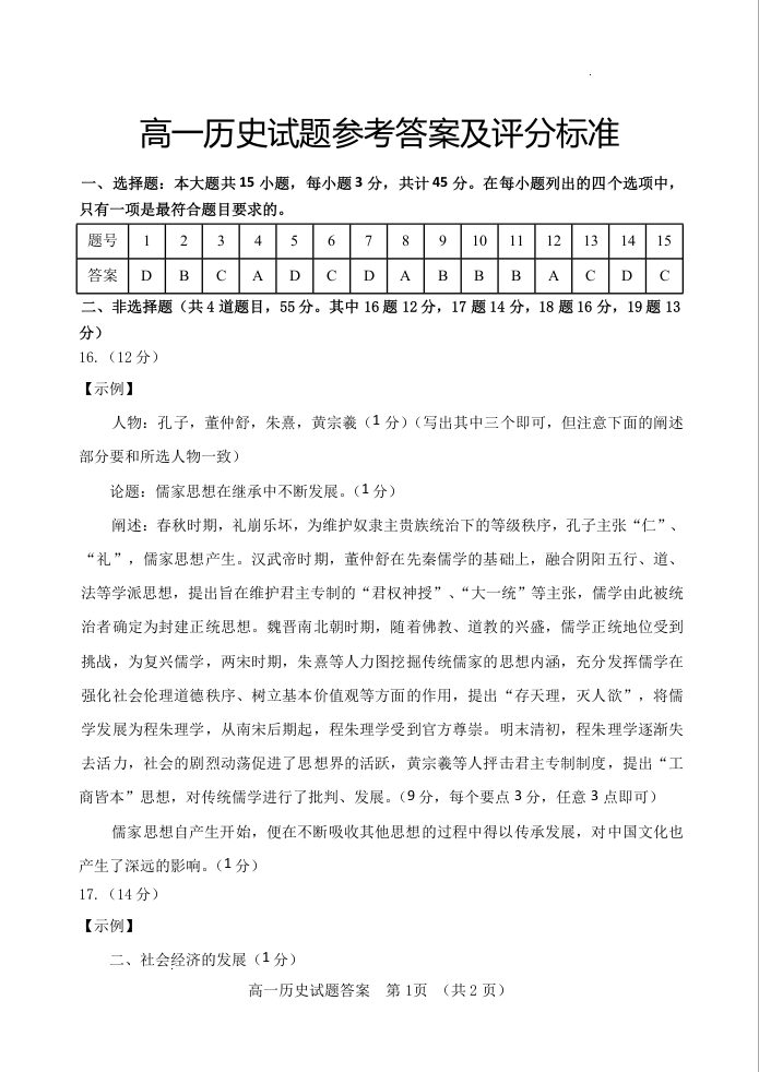 山东省泰安市肥城市2023-2024学年高一上学期期中考试历史答案