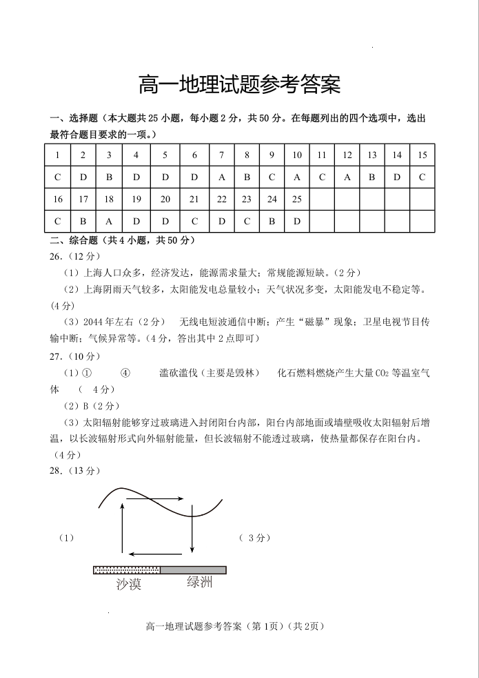 山东省泰安市肥城市2023-2024学年高一上学期期中考试地理答案