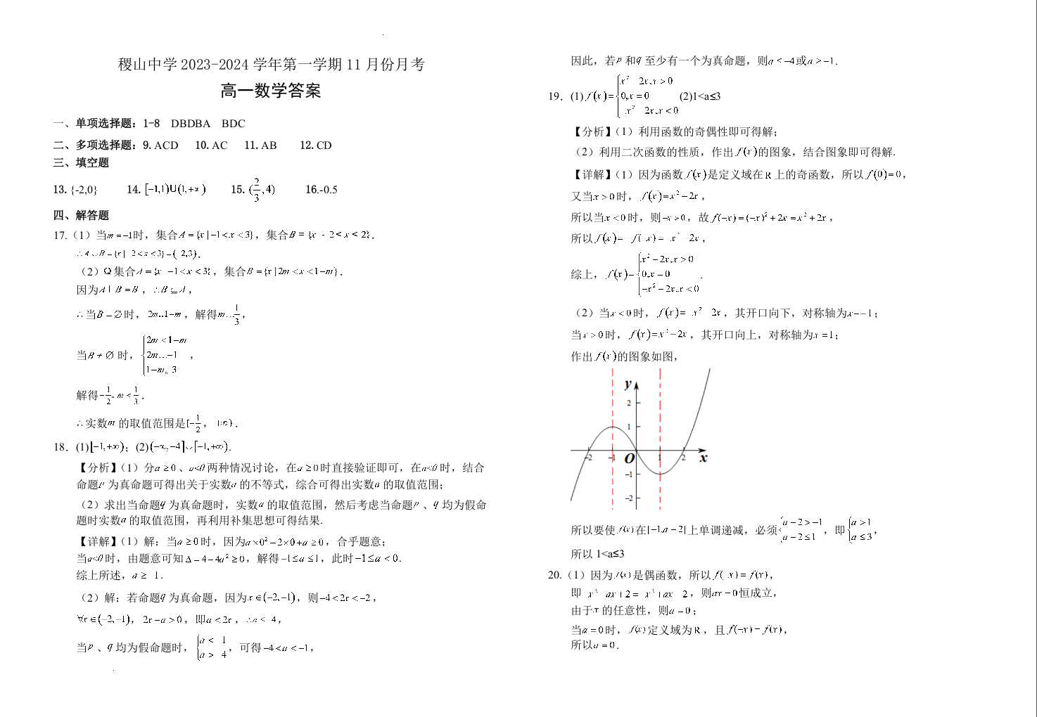 山西省运城市稷山县稷山中学2023-2024学年高一上学期11月月考数学答案