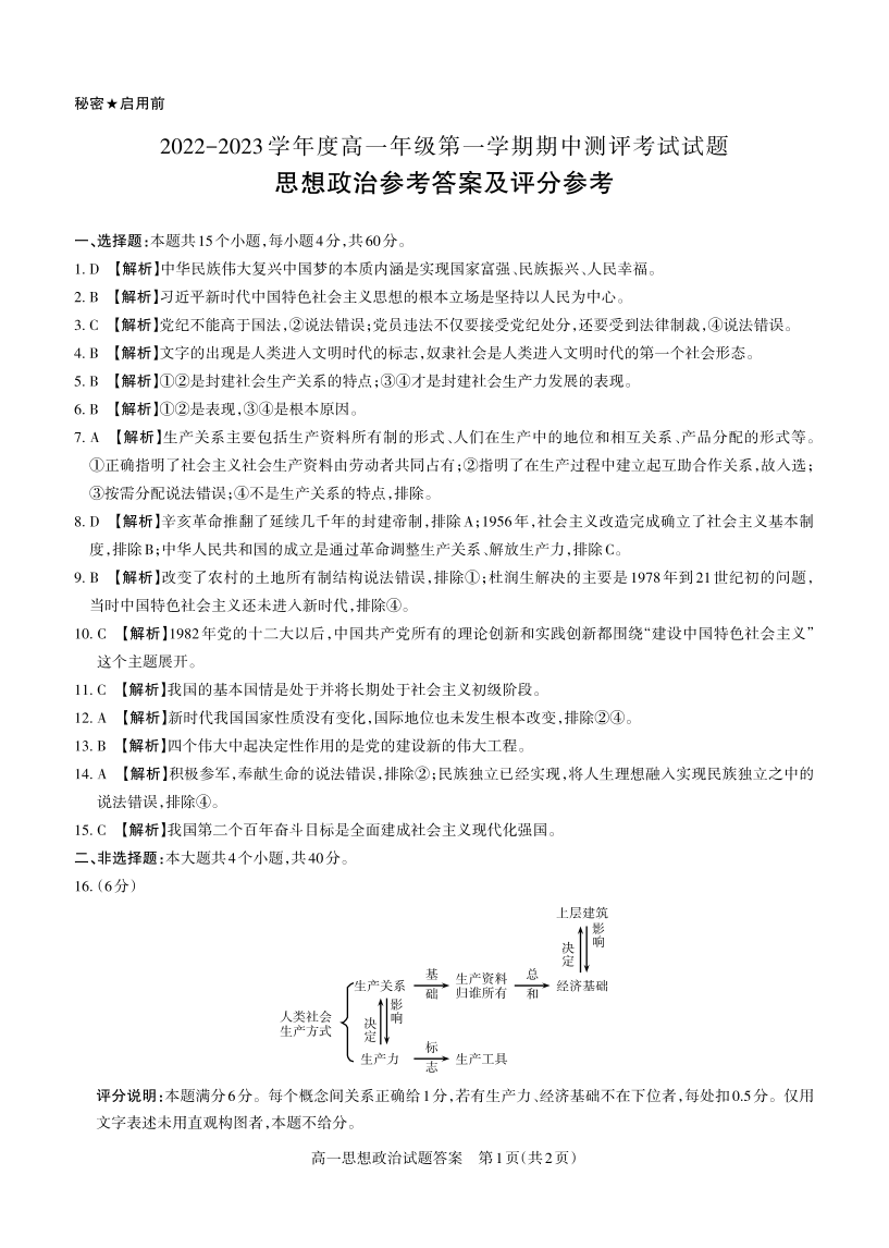 山西省运城市稷山县稷山中学2023-2024学年高一上学期11月月考政治答案
