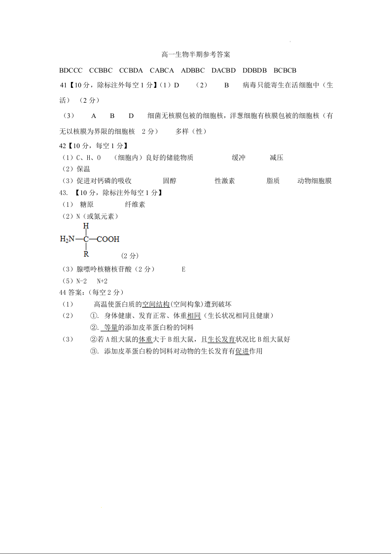 四川省成都外国语学校2023-2024学年高一上学期期中考试生物答案