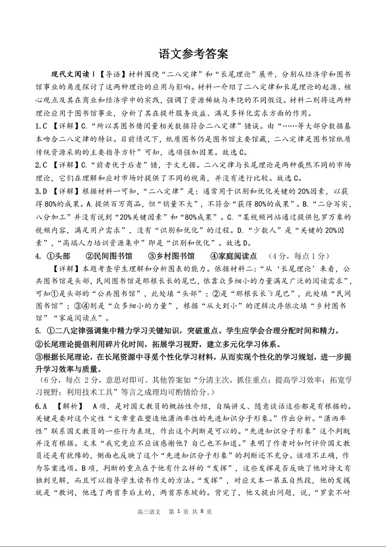 四川省射洪中学2024-2025学年下学期3月高三二模语文答案