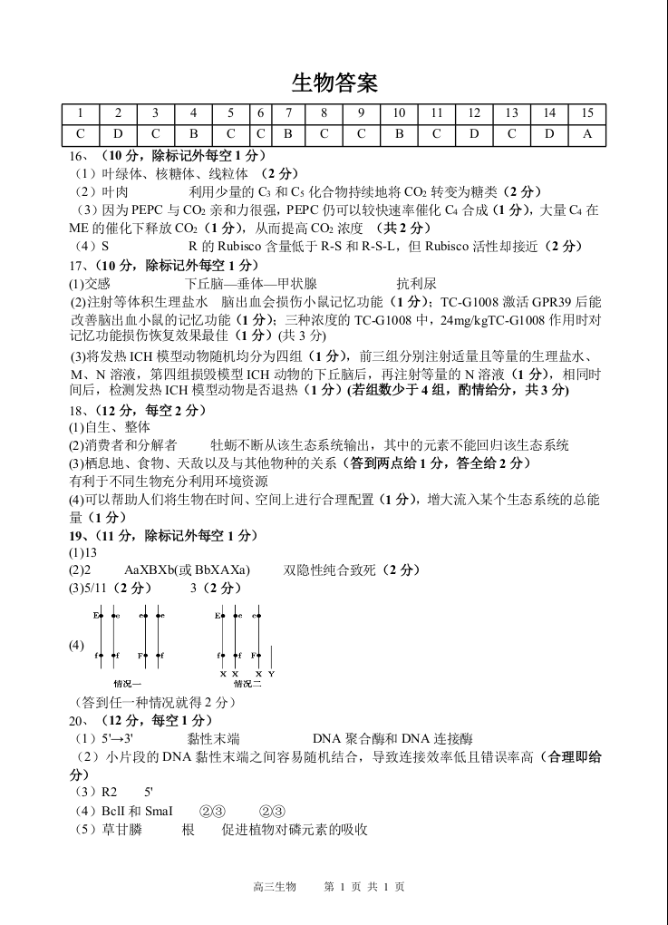 四川省射洪中学2024-2025学年下学期3月高三二模生物答案