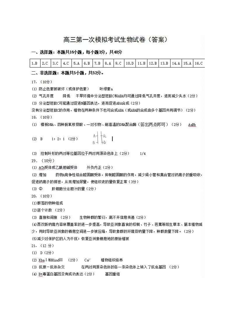 宁夏石嘴山市第一中学2024-2025学年下学期高三一模考试生物答案