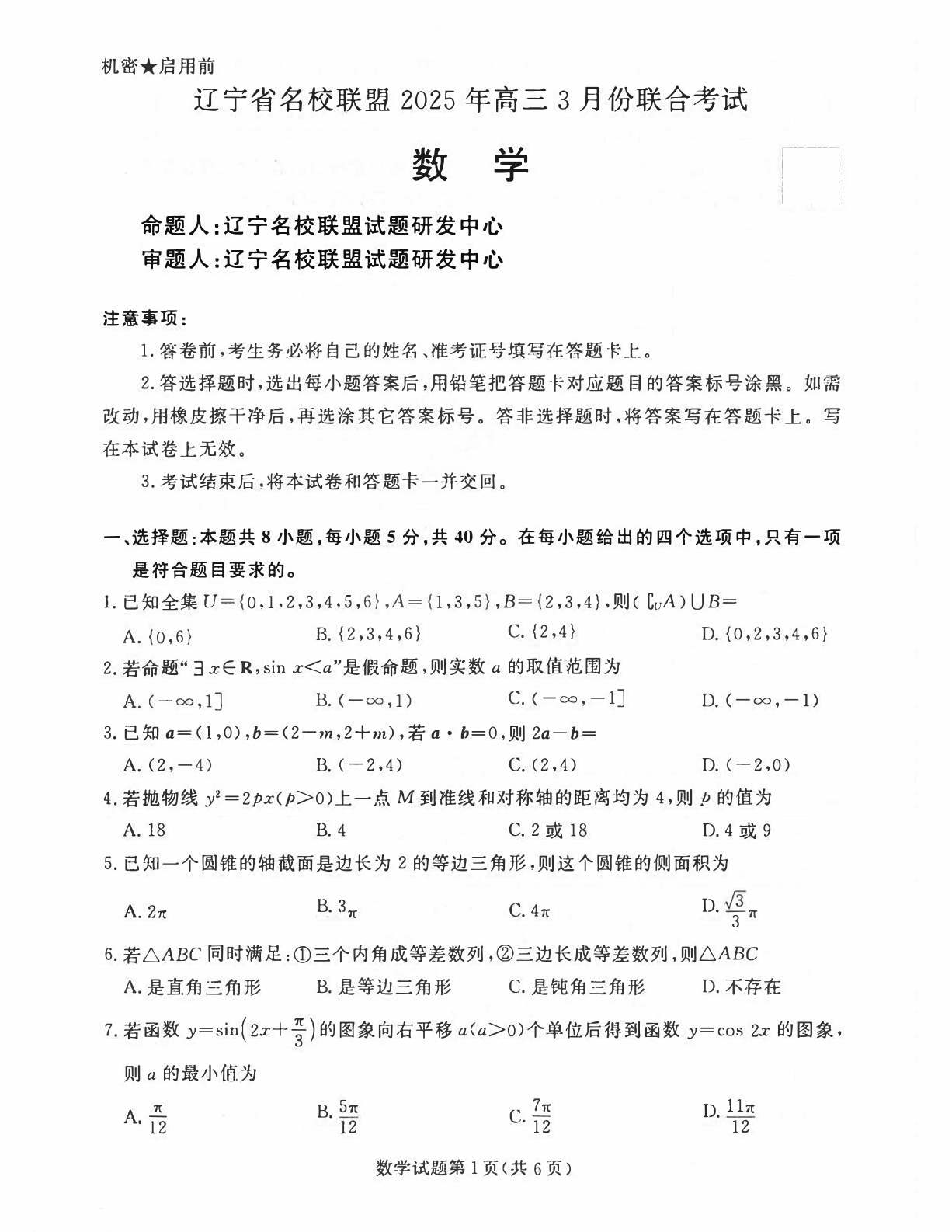 辽宁省名校联盟2024-2025学年下学期3月高三联合考试数学