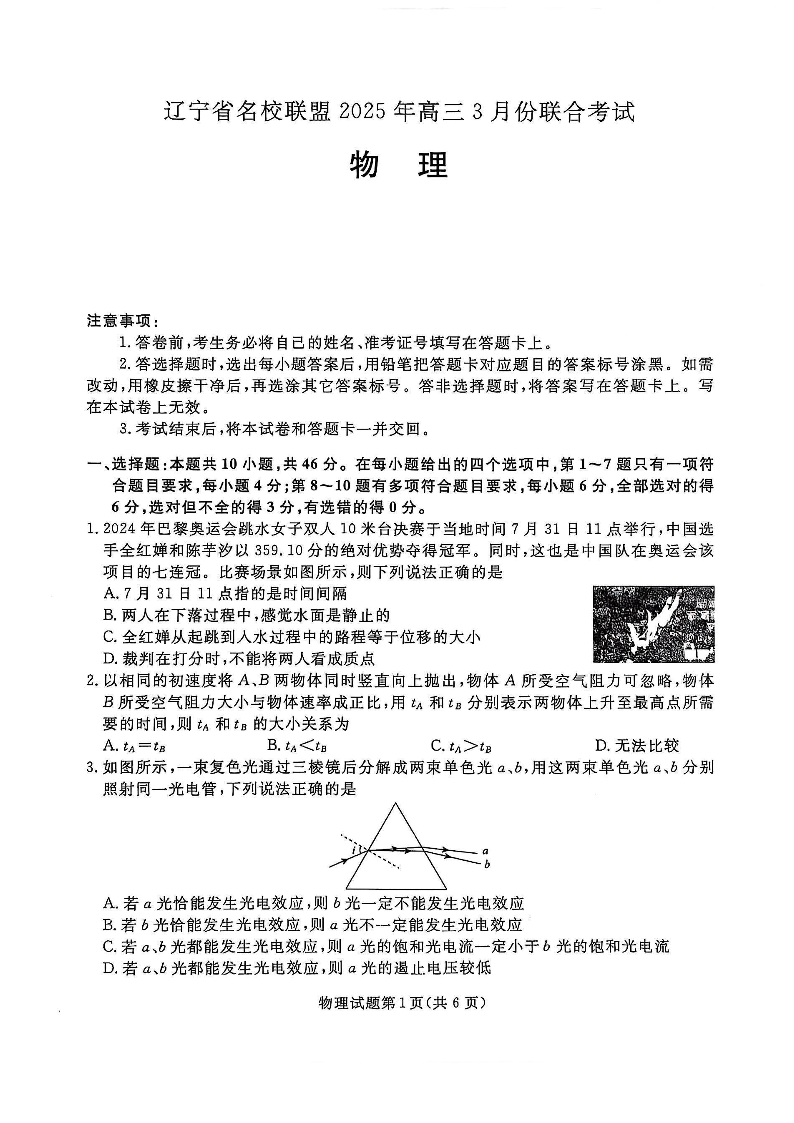 辽宁省名校联盟2024-2025学年下学期3月高三联合考试物理