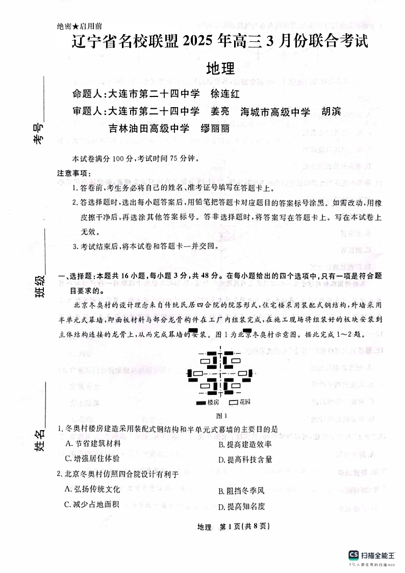 辽宁省名校联盟2024-2025学年下学期3月高三联合考试地理