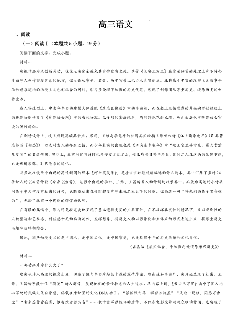 吉林省通化市梅河口五中2024-2025学年下学期高三一模测试语文+答案