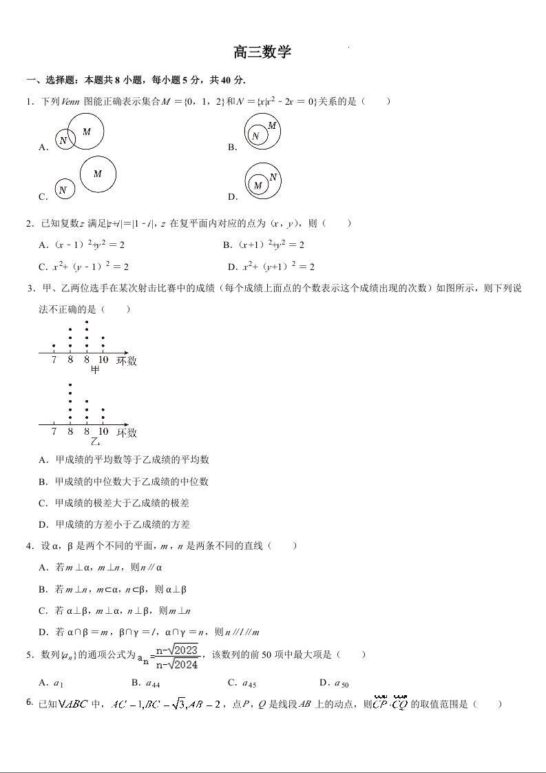 吉林省通化市梅河口五中2024-2025学年下学期高三一模测试数学+答案