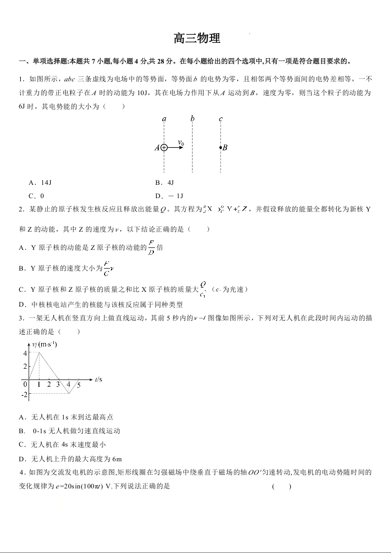 吉林省通化市梅河口五中2024-2025学年下学期高三一模测试物理+答案