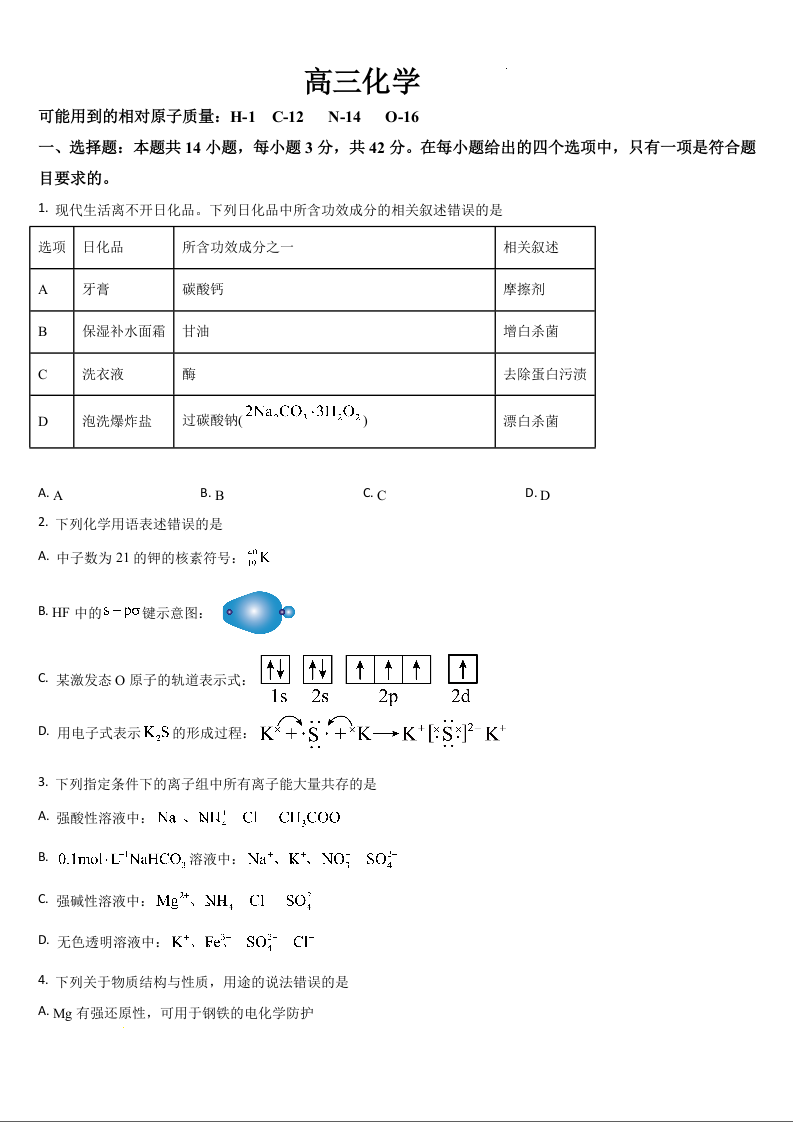 吉林省通化市梅河口五中2024-2025学年下学期高三一模测试化学+答案