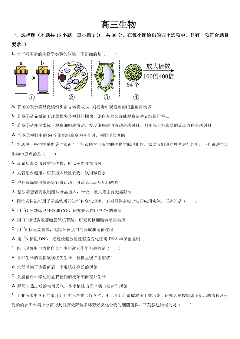 吉林省通化市梅河口五中2024-2025学年下学期高三一模测试生物+答案