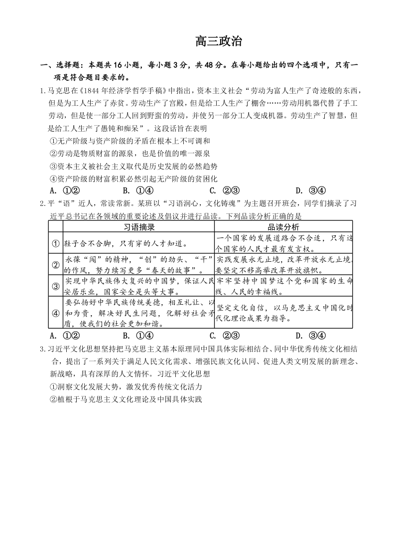 吉林省通化市梅河口五中2024-2025学年下学期高三一模测试政治+答案